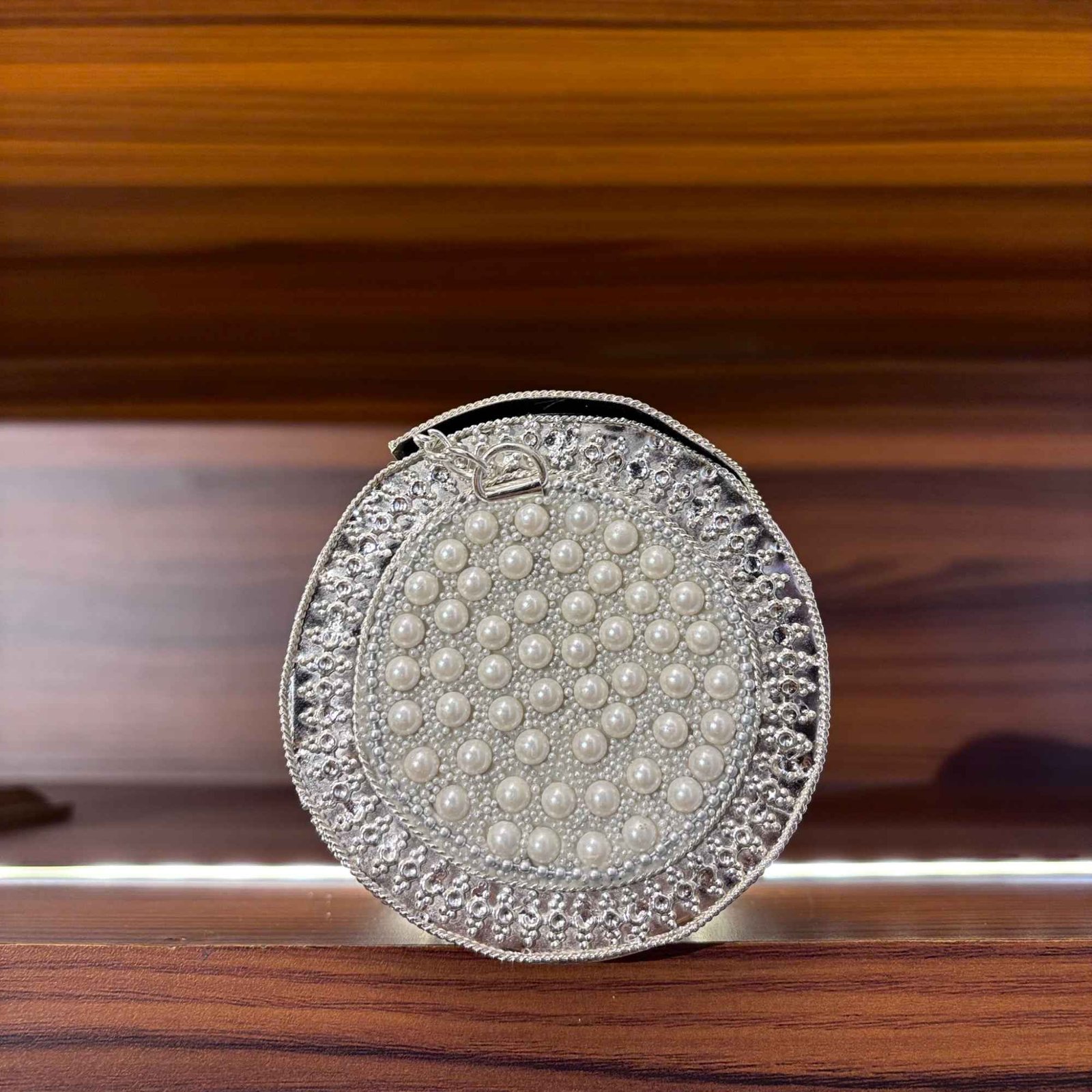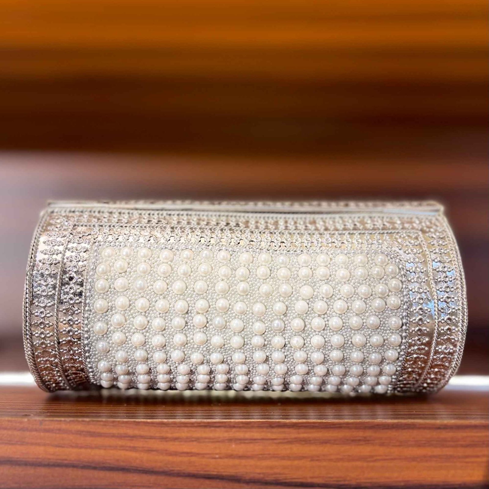 Statement Accessory: Its unique barrel shape and lavish pearl detailing make it a standout piece
