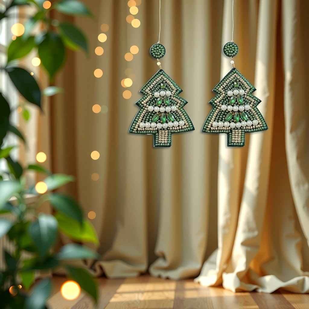 Festive Evergreen Beaded Earrings – Christmas Glam for Every Look