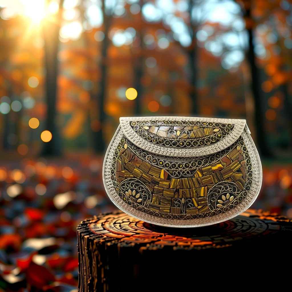 Bathed in the warmth of earthy golds and dusky blacks, Golden Hour Gleam is that perfect twilight moment in handbag form. With hand-laid mosaic work framed by intricate metallic detailing, this clutch brings together regal charm and wild sunset energy. A statement accessory for those who live by golden light and soulful style.