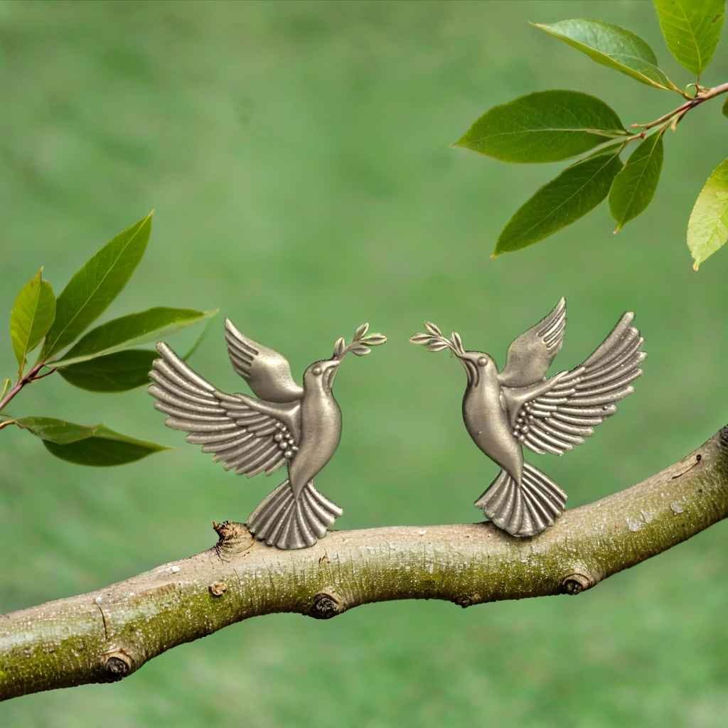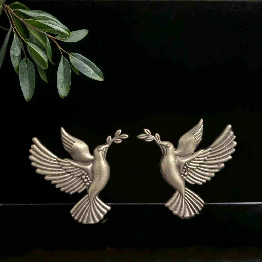The Olive Flight Studs feature two doves in mid-flight, each carrying a delicate olive branch in its beak. In cultures worldwide, doves represent peace, love, and hope. The olive branch signifies calm, healing, and new beginnings. Together, they form a design that speaks of balance and spiritual strength.