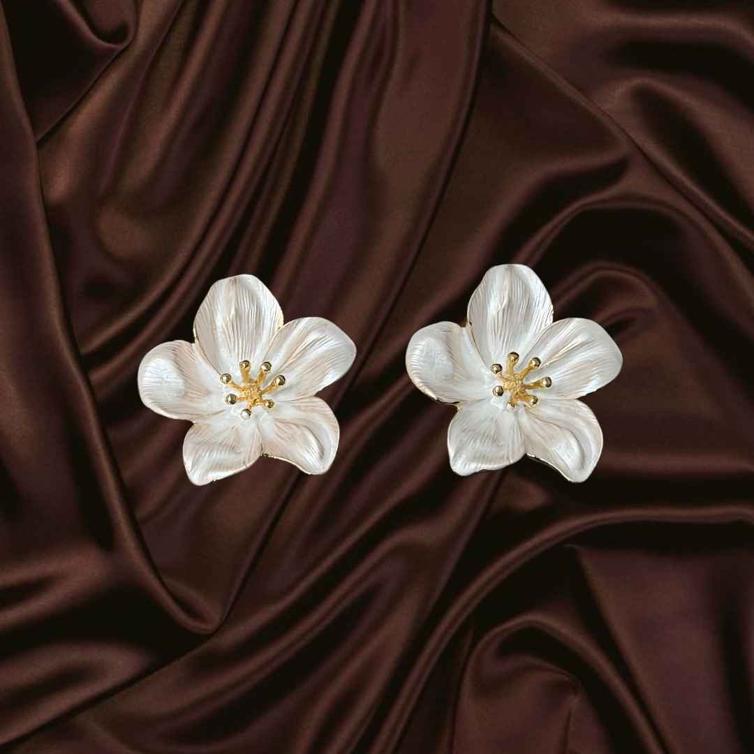 Phoolan Studs are inspired by the tender grace of blooming petals. Each earring is adorned with mother-of-pearl-like detailing that creates a luminous, ethereal glow, perfectly capturing the essence of nature’s delicate artistry. The golden stamen accents add a hint of warmth and richness, giving these studs a sophisticated edge that shines in any setting.