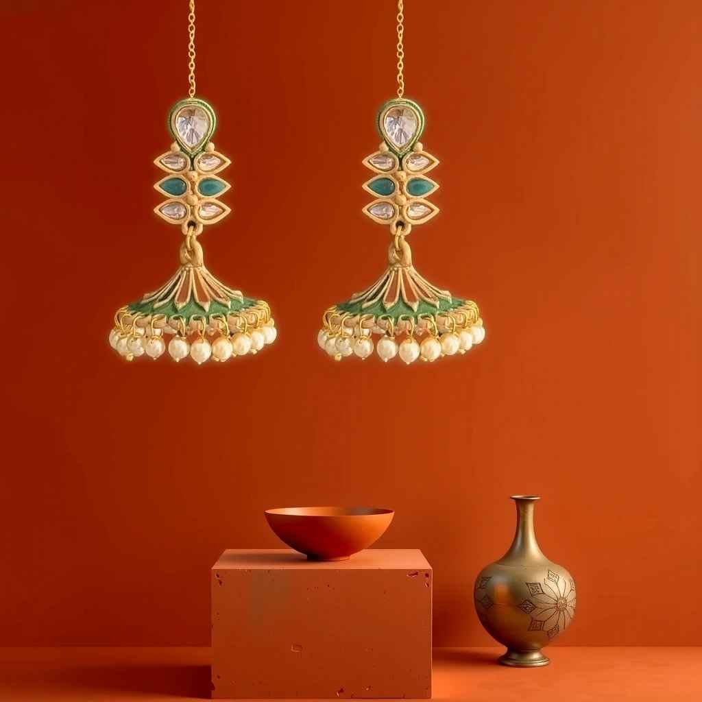 - Material: Gold-tone Metal with Kundan Stones, Enamel, and Pearl Accents