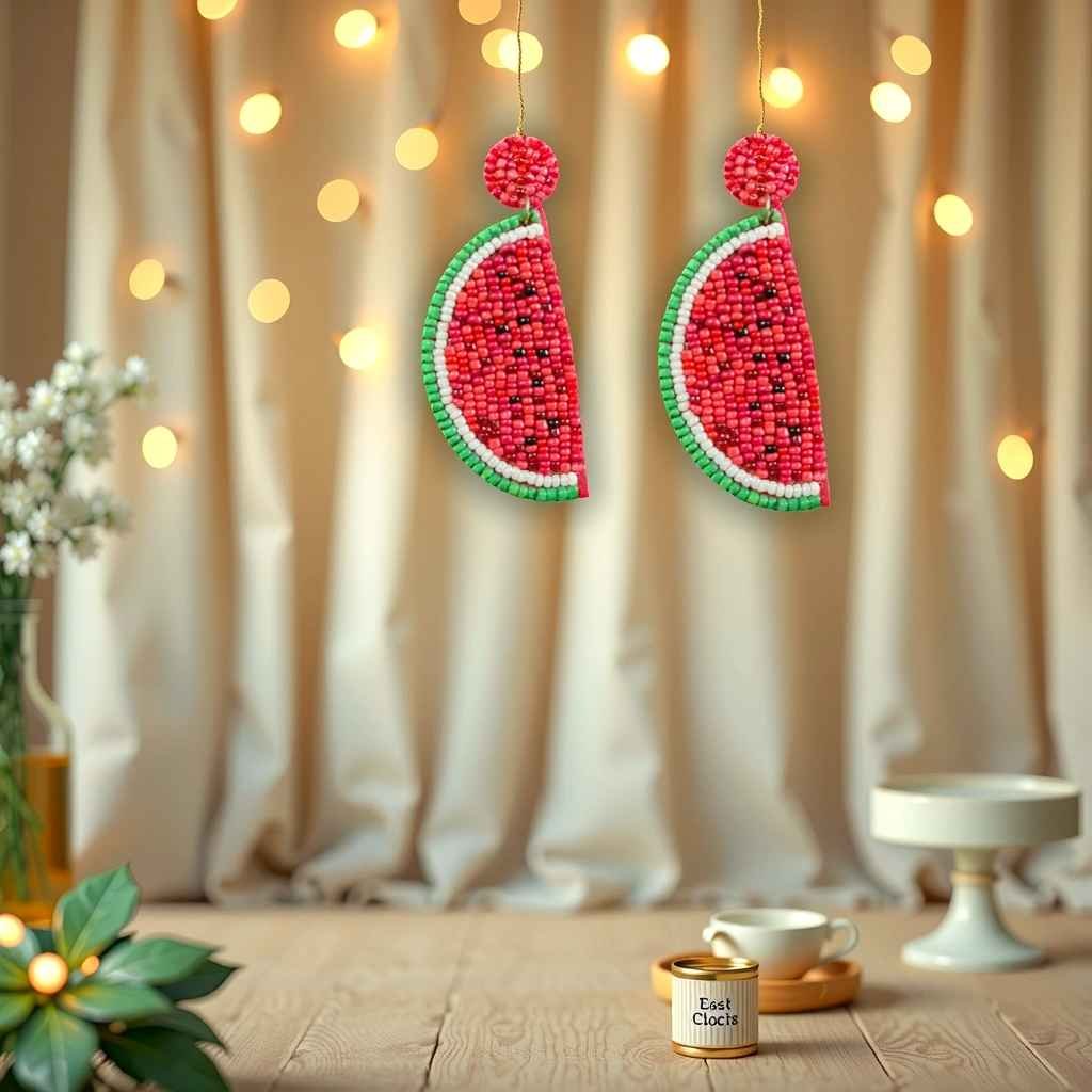 • Design: Crafted in the shape of fresh watermelon slices, these earrings pop with summery vibes and artistic flair.