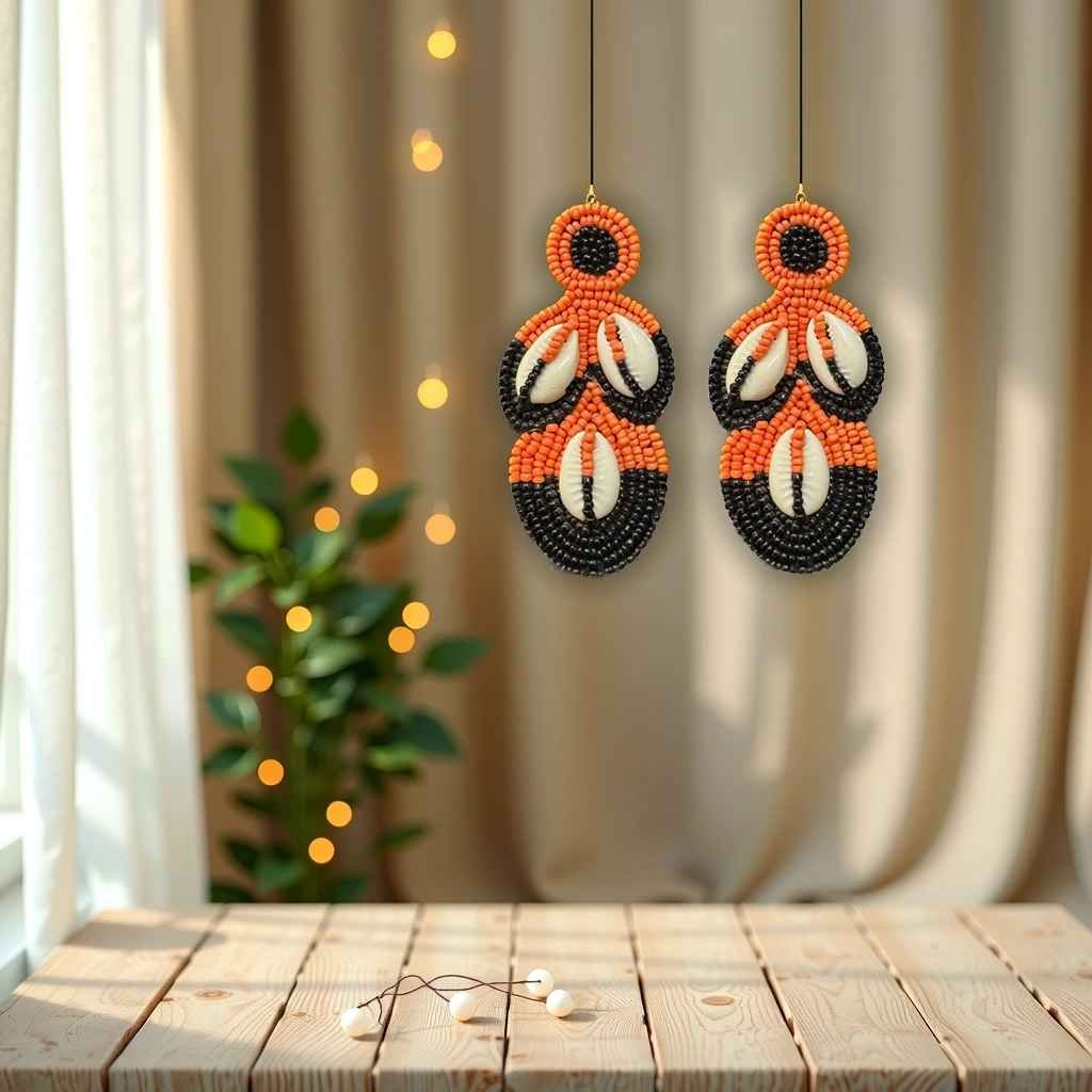 Infuse your look with bold cultural heritage and artisanal beauty with the Tribal Essence Cowrie Shell Earrings. These handcrafted statement earrings feature intricate beadwork in striking orange and black hues, symbolizing strength and vitality. Adorned with authentic cowrie shells, known for their deep spiritual and historical significance, these earrings are a powerful blend of tradition and modern fashion. Perfect for boho lovers, Afrocentric styles, or anyone looking to make a statement with authentic, handcrafted jewelry.